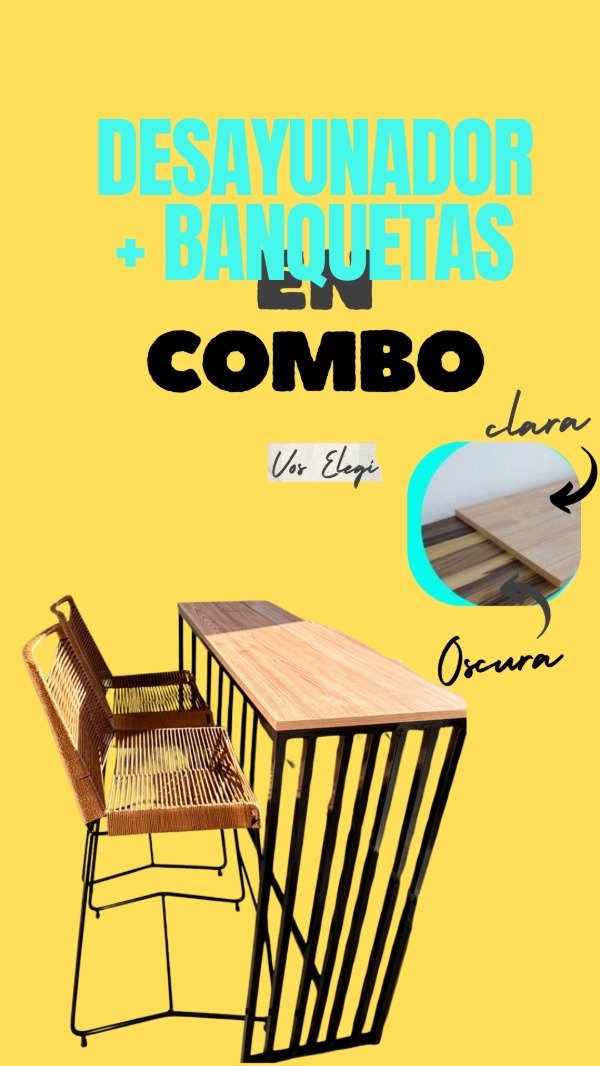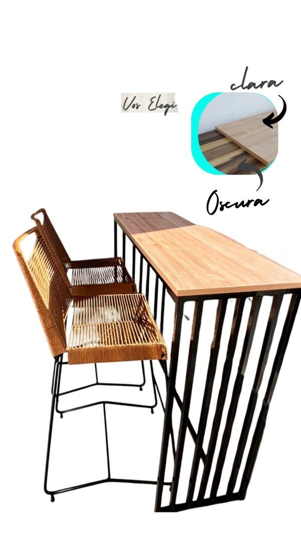 Barra desayunadora de tipo Premium reforzado ideal para aprovechar el espacio de manera practica y funcional, armando commbo junto a 2 banquetas tulum en hierro macizo con tejido simil yute.