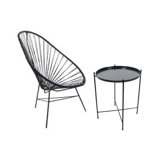 Juego de muebles de jardín de fabricación artesanal. 1 silla Acapulco y una mesa,}.