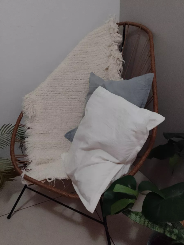 Su estructura es de hierro reforzado y viene en color negro o blanco. Puede elegir el tejido de soga símil yute en todos los colores.